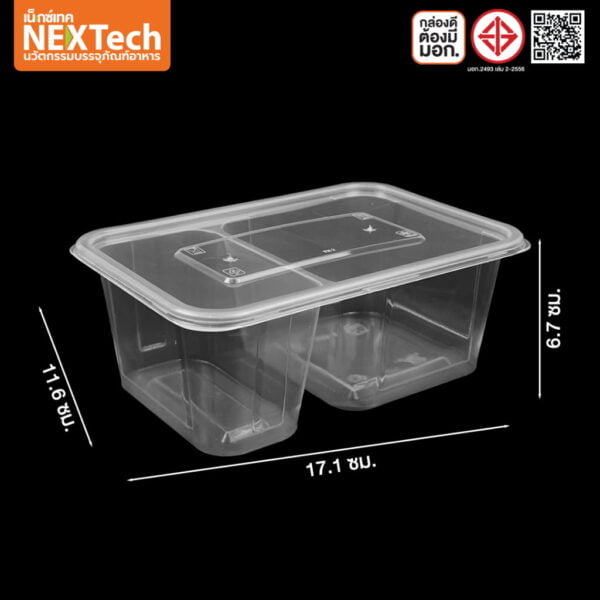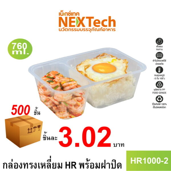 สินค้า : กล่องอาหารพลาสติกทรงเหลี่ยมใส 2ช่อง Super HR พร้อมฝาปิดใส